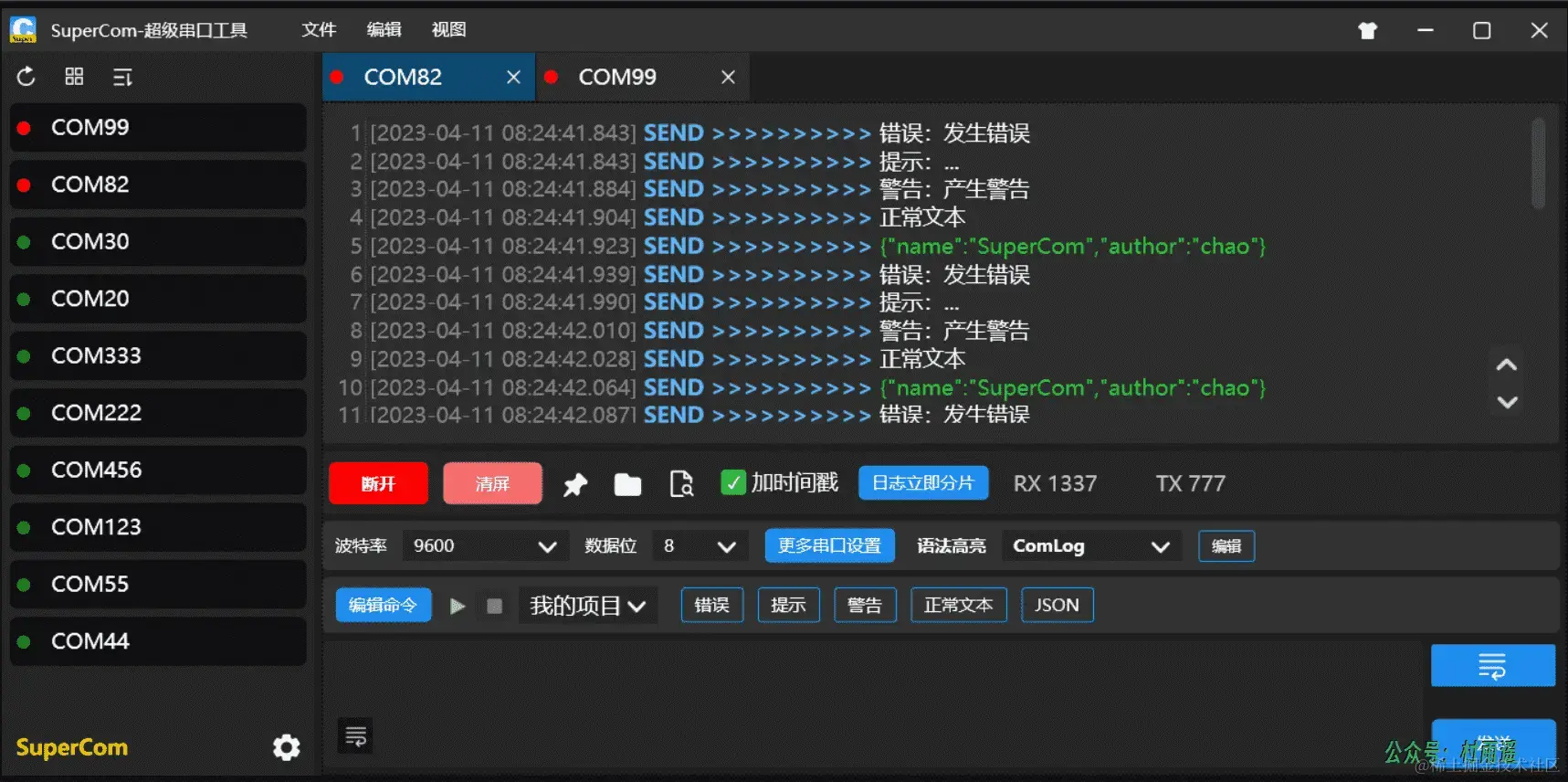 超级串口调试工具,用于 Window 串口日志的采集、存储、可视化等功能,最重要的是免费开源,具有以下特点: