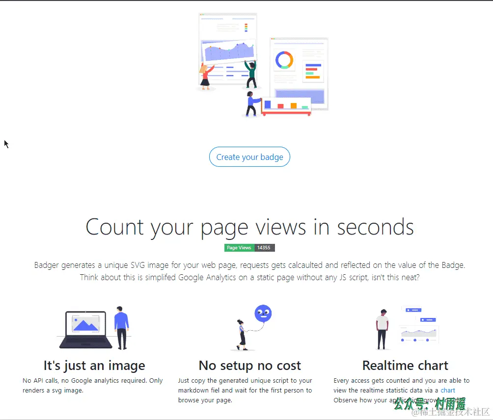 为你的网站生成独一无二的 SVG 图片,只要将该图片放到你网站的对应界面,就能通过它统计出该页面被访问的次数,一般用在 Github 主页统计访客数。