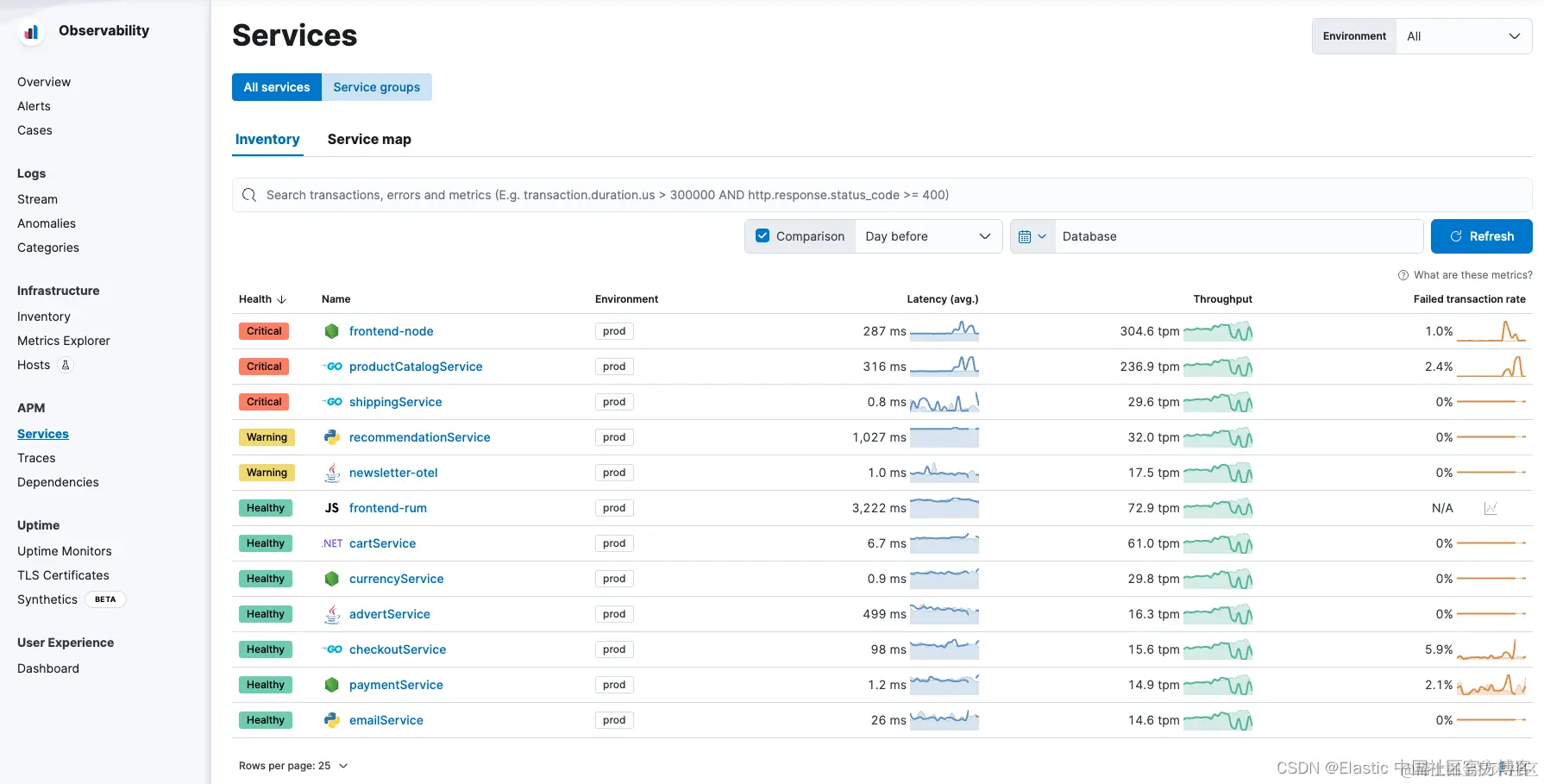 我们运行了标准 Elastic Agent 应用程序的变体,其中一项服务转向 OTel — newsletter-otel 服务。 但在开发资源允许的情况下,我们可以根据需要轻松地将这些服务转换为 OTel。
