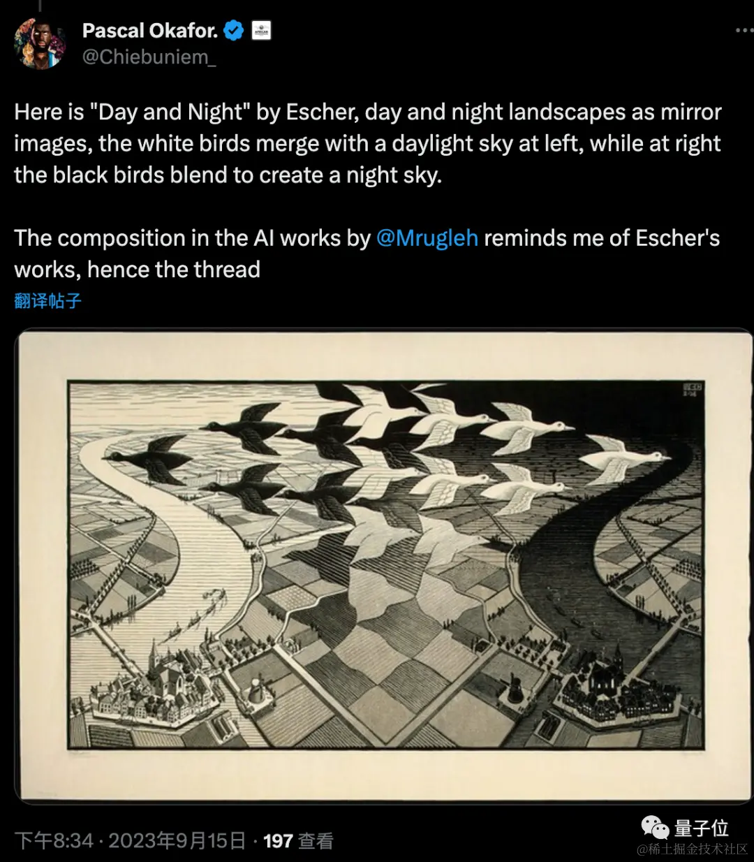也更进一步证明,生活在上个世纪的埃舍尔不靠AI就能画出这种效果来,不愧是真正的大师。