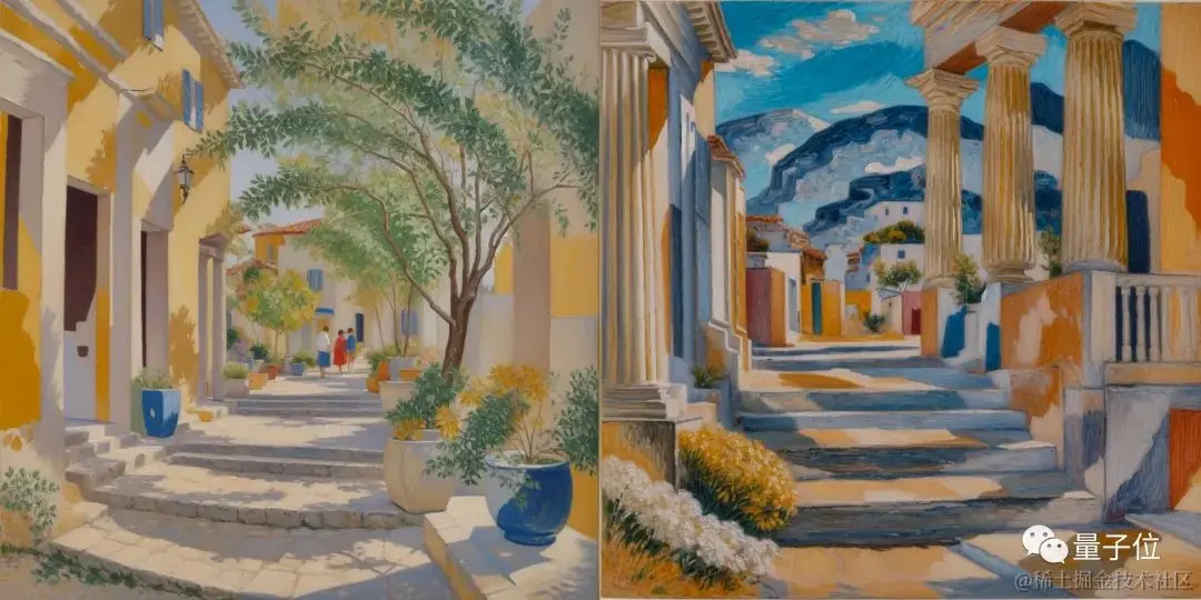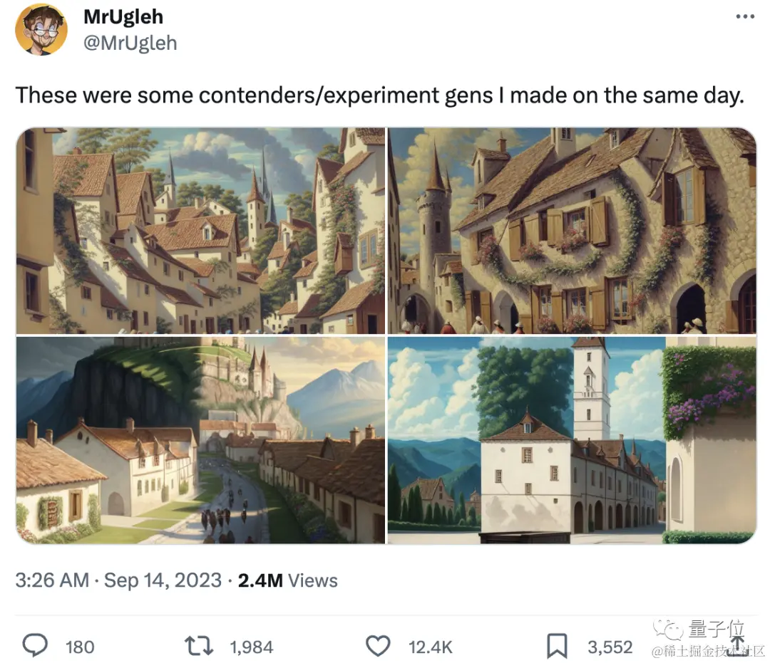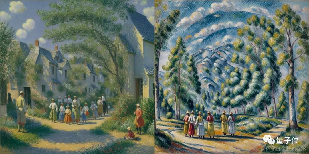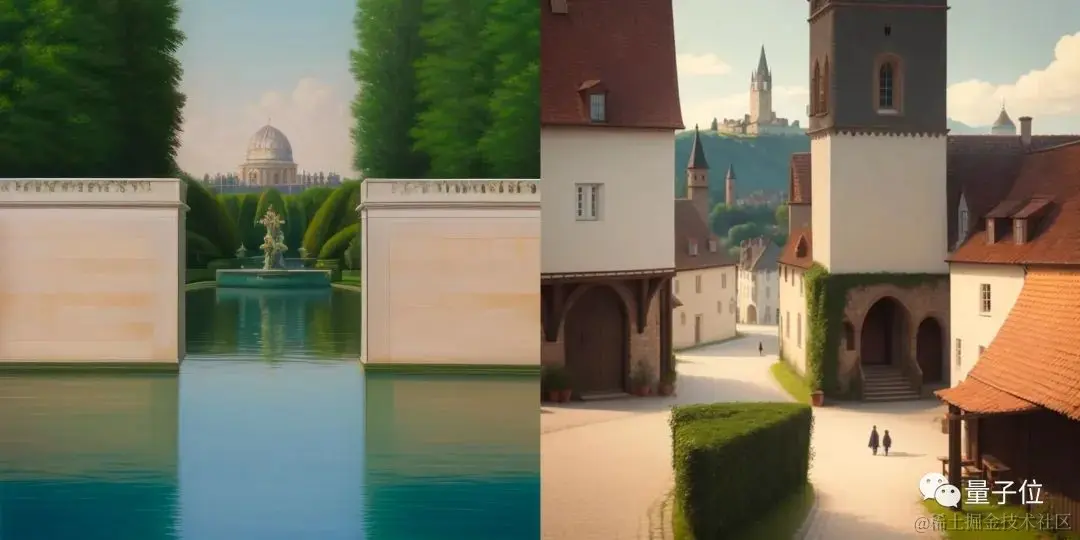 无论是建筑还是乡村田园、山光水色,AI绘出来的图都有模有样。