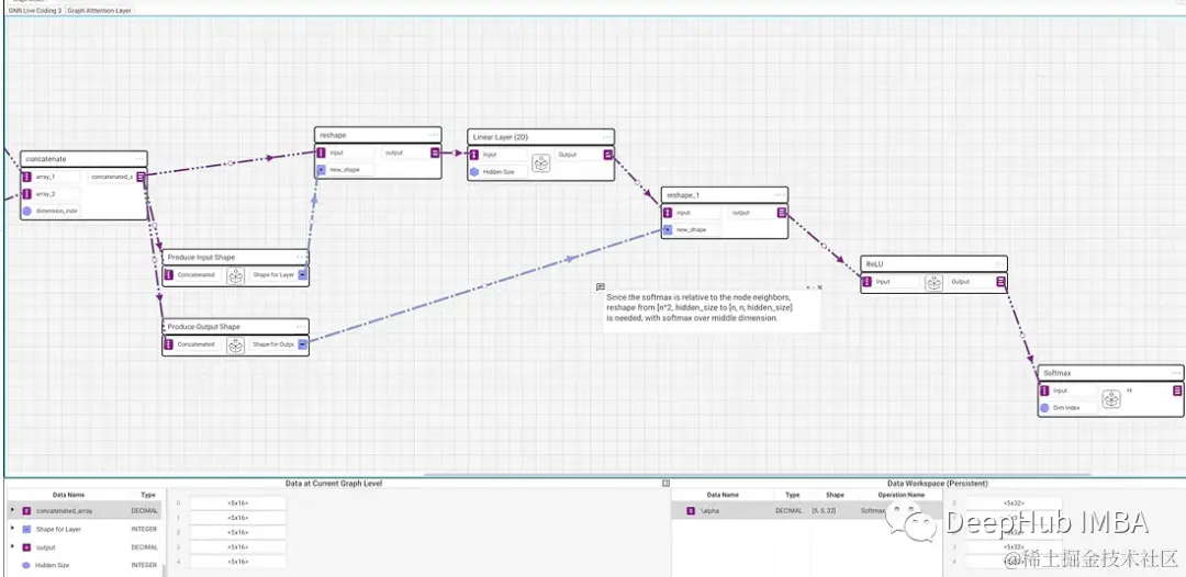 得到了形状为[5,5,hidden_size]的注意力系数,这实际上是在n个节点的图中每个图边嵌入一次。论文说这些应该被转置(维度交换),我们在ReLU之前已经做过了,现在我对最后一个维度进行softmax,这样它们就可以沿着隐藏的尺寸维度进行每个维度索引的标准化。