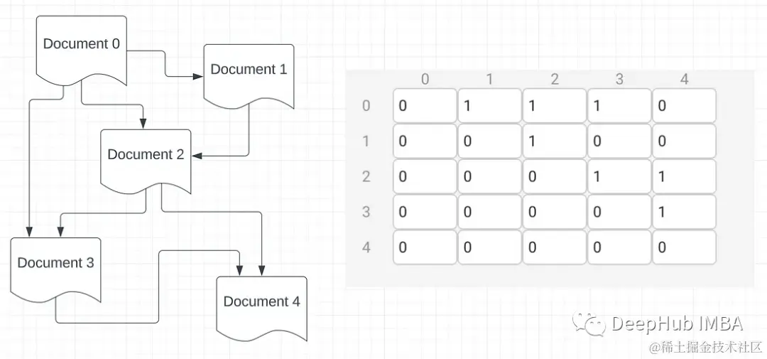 假设我们有一个表示为有向无环图(DAG)的文本文档图。文档0与文档1、2和3有一条边,为了实现可视化,这里将使用Graphbook,一个可视化的人工智能建模工具。