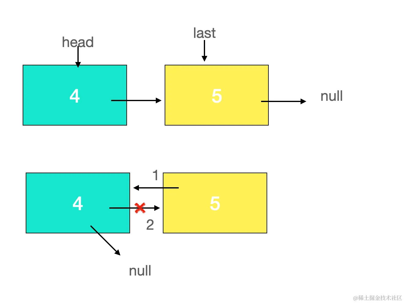 先说下last是什么,last本来是指向最后一个节点,但是颠倒后就是第一个节点了,所以last 指向反转后