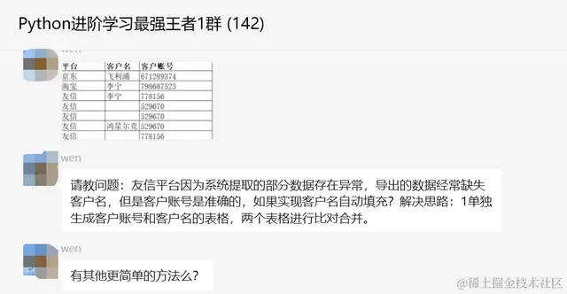 请教问题:友信平台因为系统提取的部分数据存在异常,导出的数据经常缺失客户名,但是客户账号是准确的,如果实现客户名自动填充?解决思路:1单独生成客户账号和客户名的表格,两个表格进行比对合并。