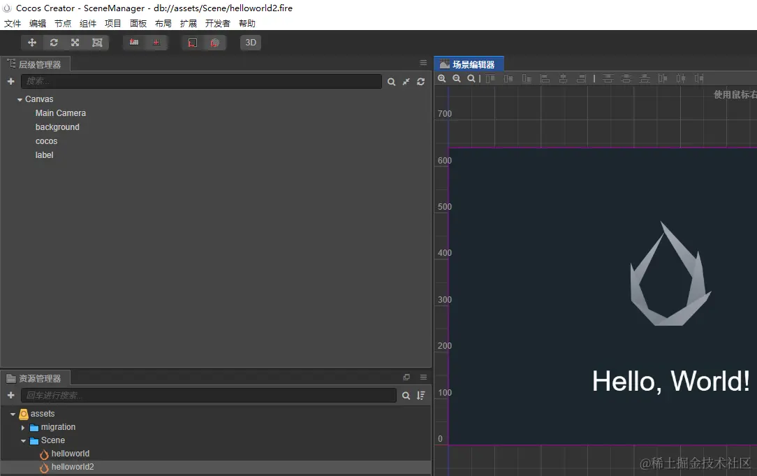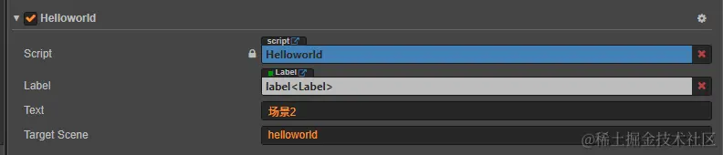 测试代码配置一下点击后需要加载切换的目标场景helloworld2。