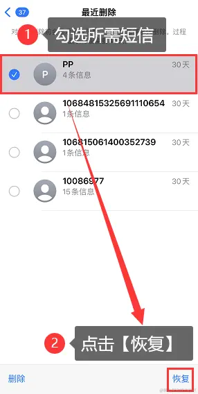 方法一:通过最近删除文件夹恢复删除的短信