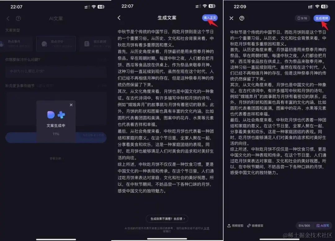 2.然后再根据AI写的文案全自动生成视频。