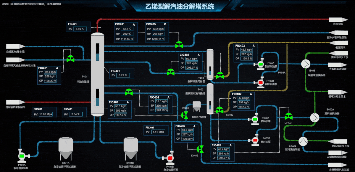 而在工业4.0 时代,很多企业都开始了数字化转型之路,今天我们的案例就来介绍下利用数维图 Sovit2D 可视化组态编辑器 搭建出来的“乙烯裂解塔监控系统”。