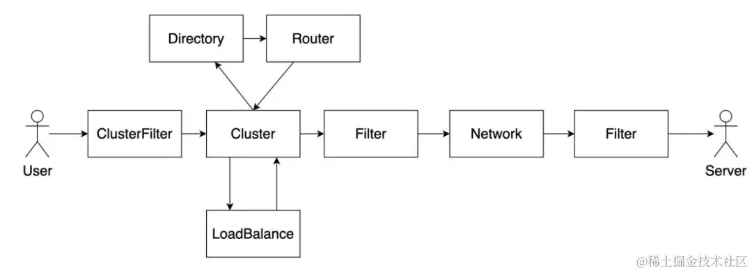 责任链上的处理器对象是将 Filter 封装的 Invoker 对象,每个 Invoker 对象指向下一个处理器封装的Invoker对象。