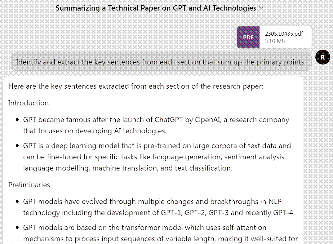 我用 “Research By Vector” 这个 ChatGPT 插件找了一篇关于 GPT 的学术论文 (40页),用 “AskYourPDF” 插件摘要如下: