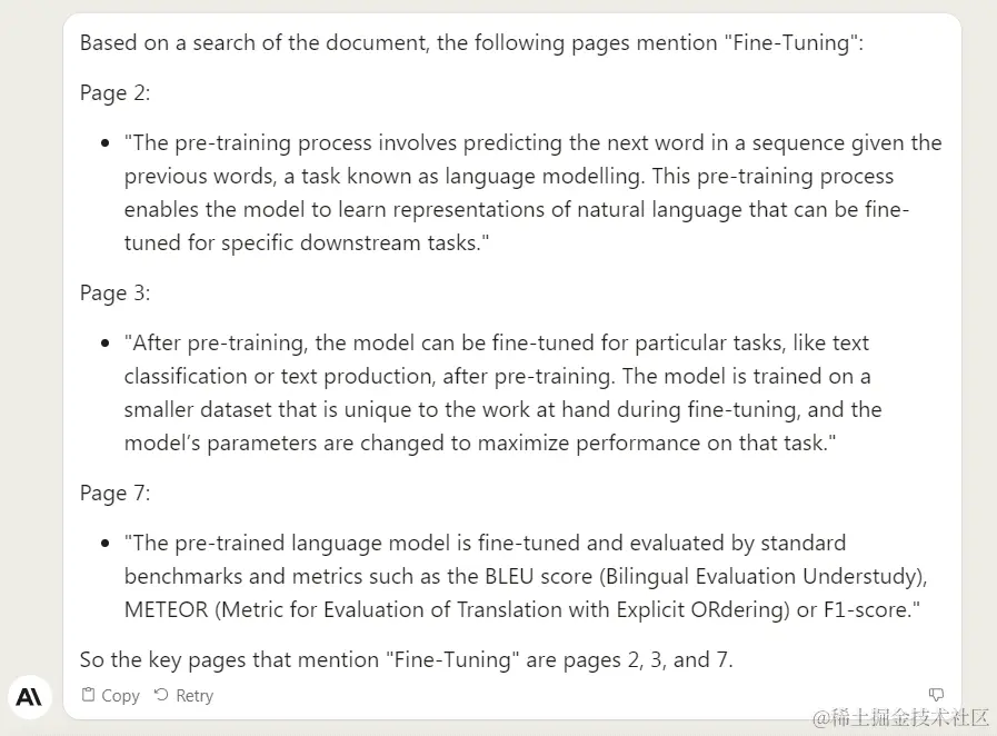 如果有感兴趣的话题,你还可以让 AskYourPDF 插件或者 Claude 2 告诉你该话题出现在第几页,然后你可以针对性地深入阅读。AskYourPDF 更擅长此类任务,不仅处理更快,还帮我定位到了更多的页面。