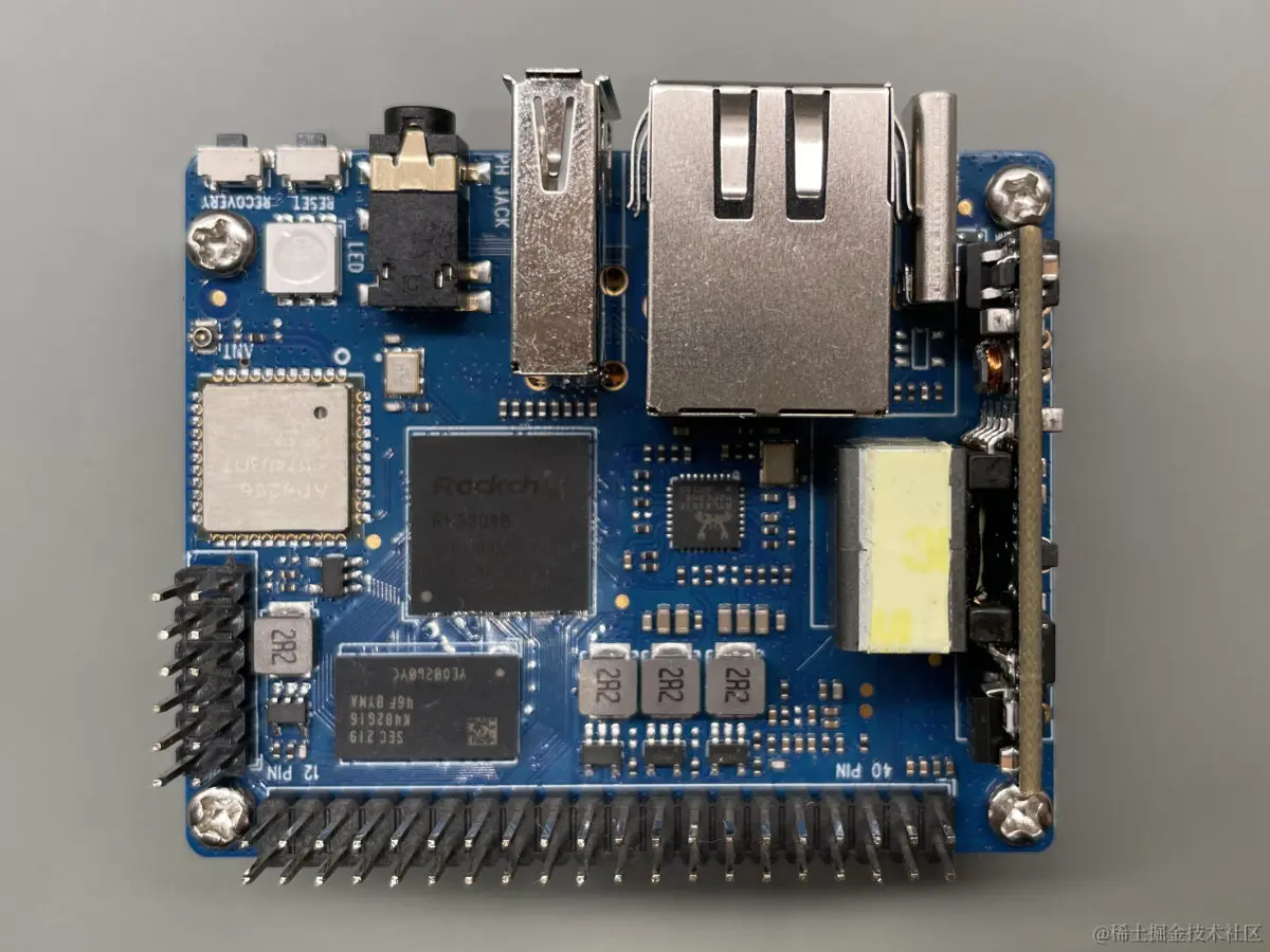 板上还有两个接头。一种是 40 针,另一种是 12 针。侧面添加了一个 12 针接头,用于 UART、I2C 和 SPI 通信。