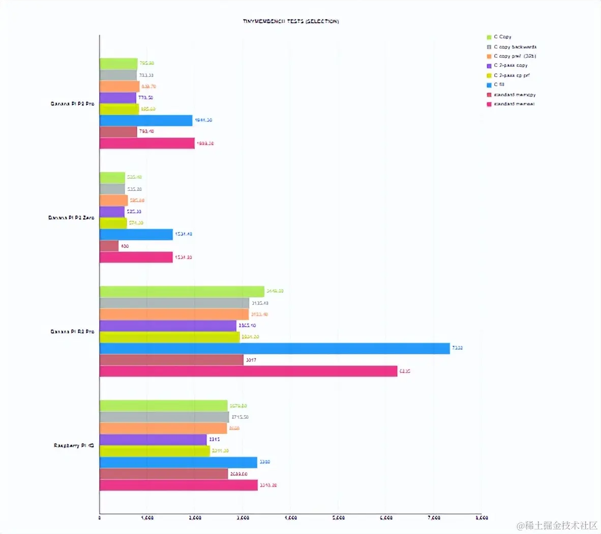 Tinymembench 的结果显示,与我们为该主板所做的其他内存测试相比,结果明显更好。原因可能在于 Tinymembench 测试的本质,该测试测量尽可能高的内存流性能。