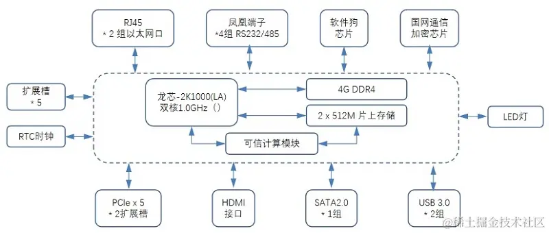 - 龙芯高性能处理器2K1000LA,主频1.0GHz,4G DDR3