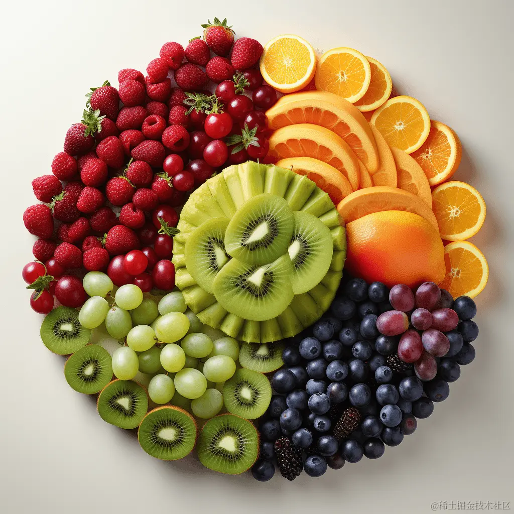 Prompt 2: circular arrangement of fresh fruit (新鲜水果的圆形排列)