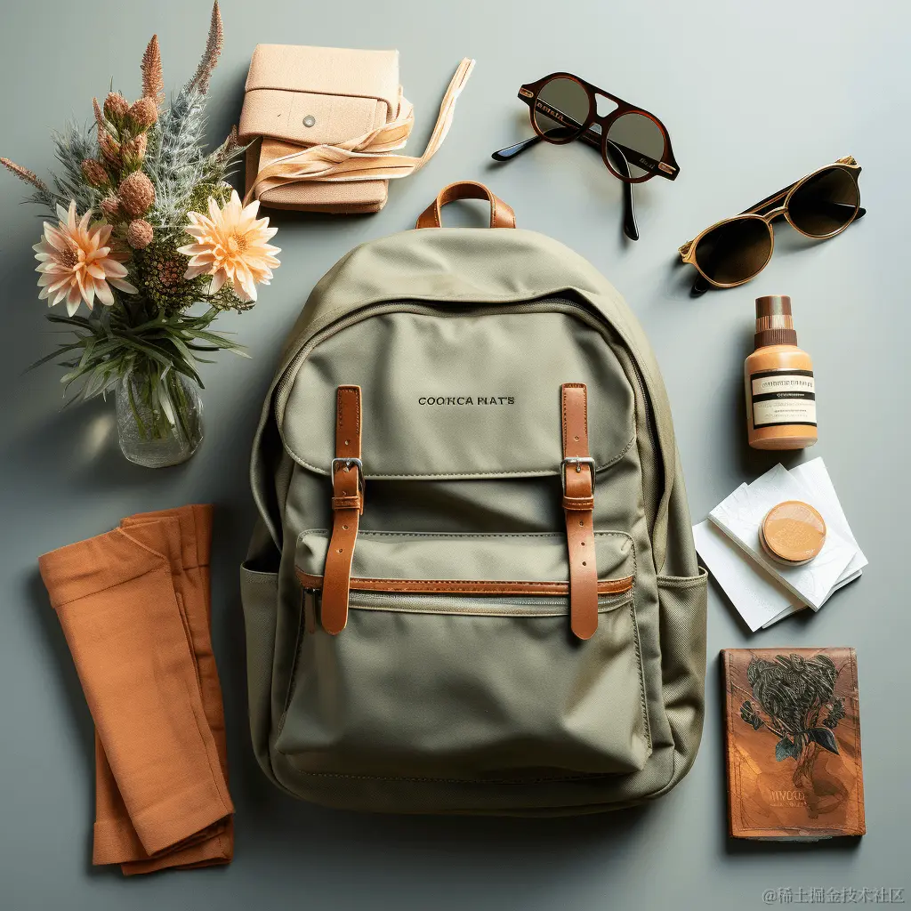 在提示词中包含了 “flat lay” 这个词,Midjourney 会自动根据你要排列的物体调整相应的布局和背景,甚至还包括灯光效果。总体来说,背景会比较简单,使得整体构图看上去不凌乱。