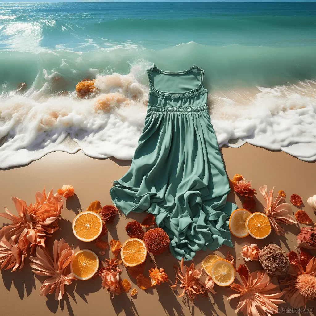 Prompt: flat lay beach essentials, tidal waves, vibrant fantasy colors (平铺的海滩必备品、潮汐、鲜艳的梦幻色彩)