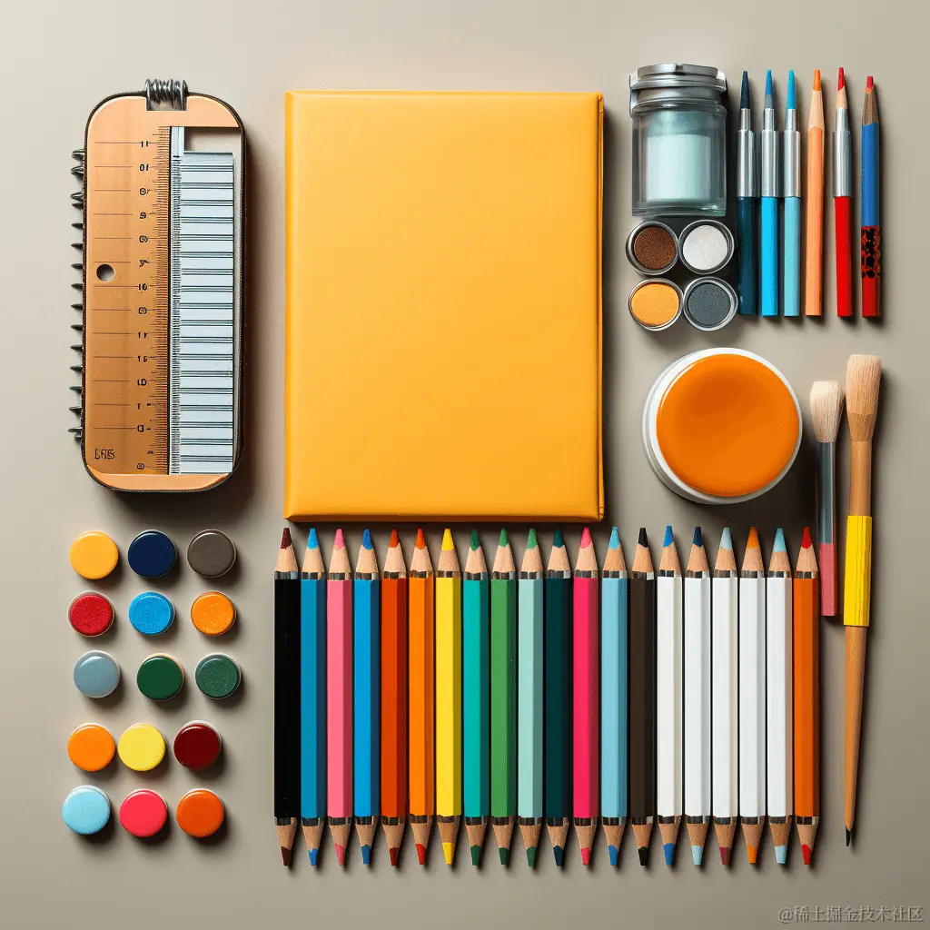 Prompt 1: flat lay art supplies (平铺美术用品)