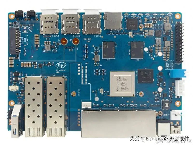 MediaTek MT7988 SoC 专为高性能网络而设计,无论是有线还是无线。这意味着它可以处理所有以太网连接、Wi-Fi 7、4G 和 5G。共有三个 Nano SIM 插槽,可跨多个运营商提供冗余。对于制造我们自己的设备来说,这是一个有吸引力的提议。