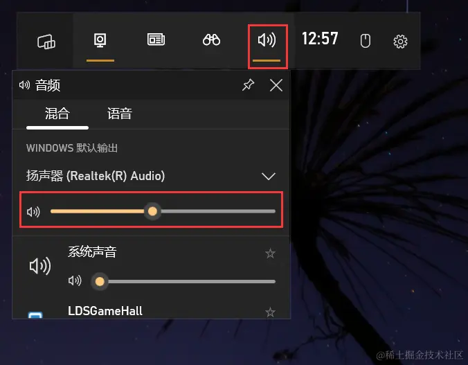 步骤2:在Xbox Game Bar中,点击 “音频” 图标,在弹出的音频设置中,把扬声器声音调大。