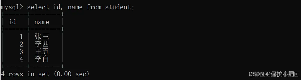 因为我们是student 数据表是创建在 school 数据库里面,然后可以通过 ‘.’这个符号来约束一下,避免误操作,这也是一种精确表示的方法。