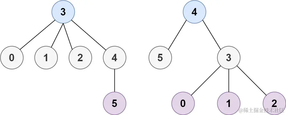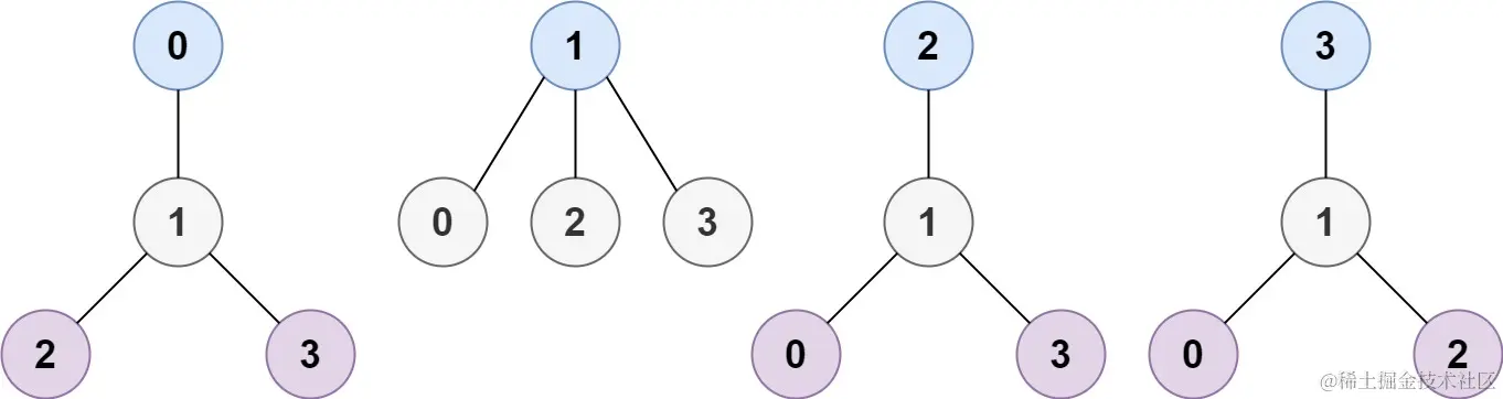 可选择树中任何一个节点作为根。当选择节点 作为根节点时,设结果树的高度为 。在所有可能的树中,具有最小高度的树(即,min(h))被称为 最小高度树 。