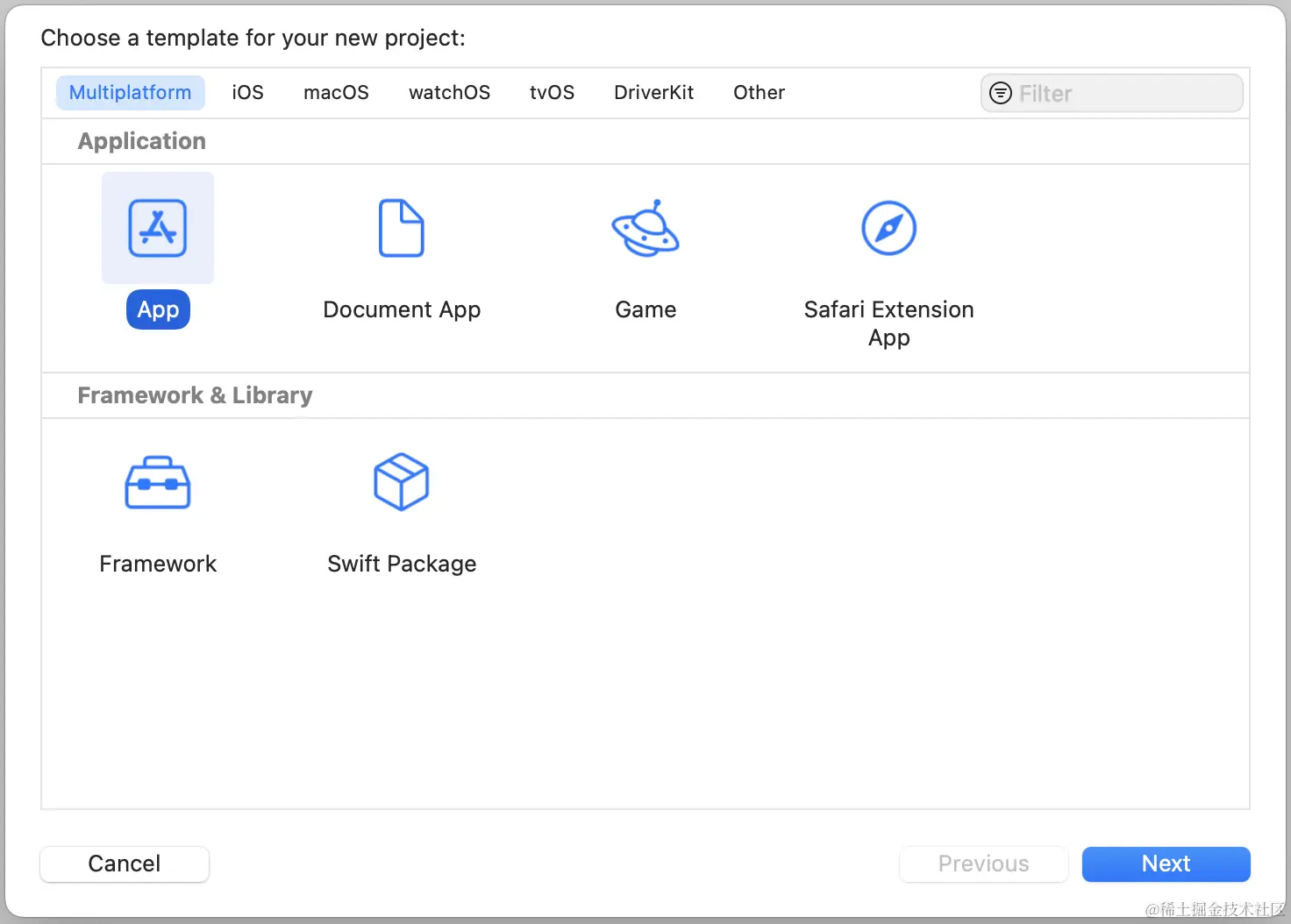 选择 “MultiPlatform” 标签,选择 “App” 类型的项目:AppCerts。