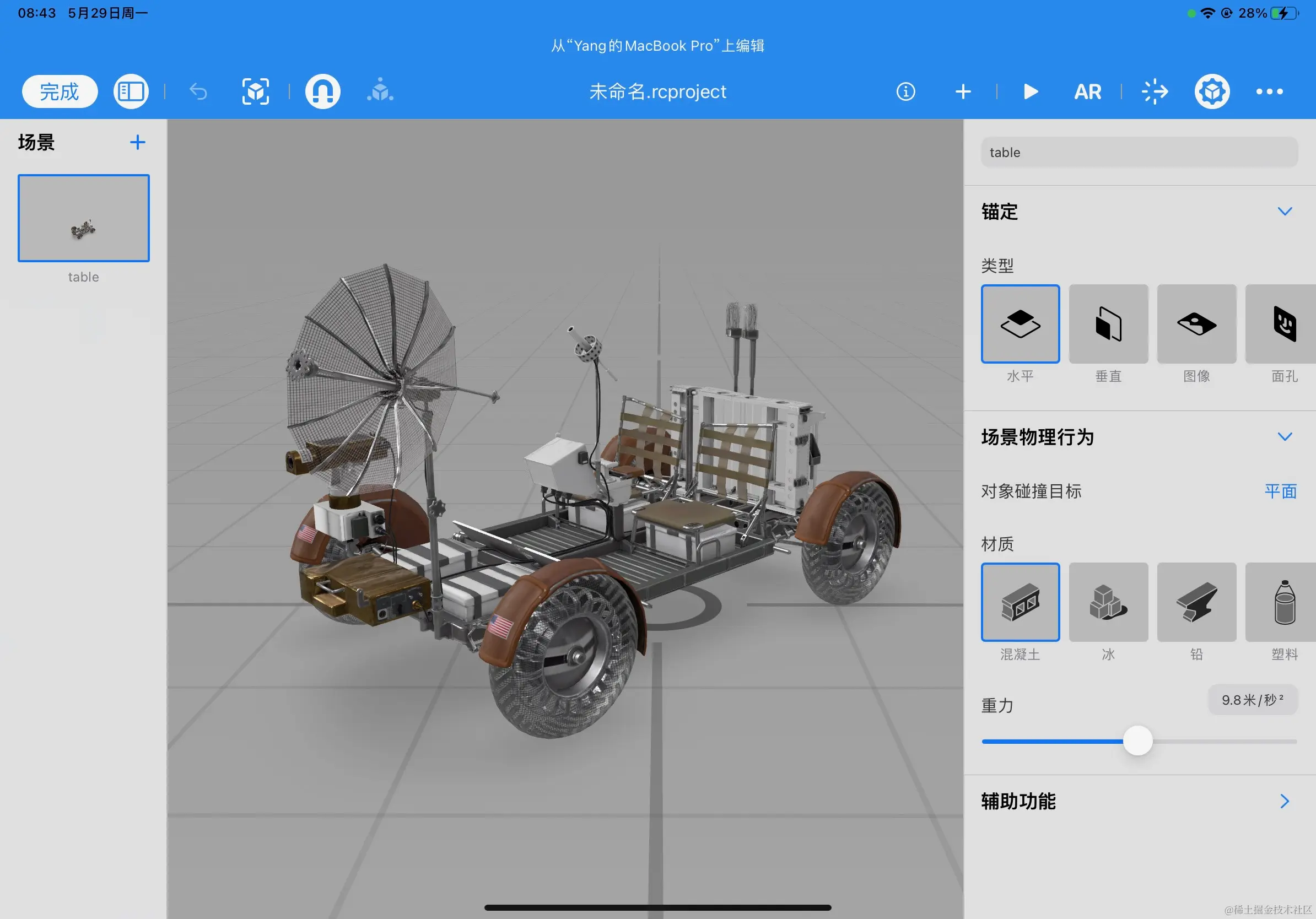 恭喜你!你已经使用 Reality Composer 成功创建了第一个 AR 场景。