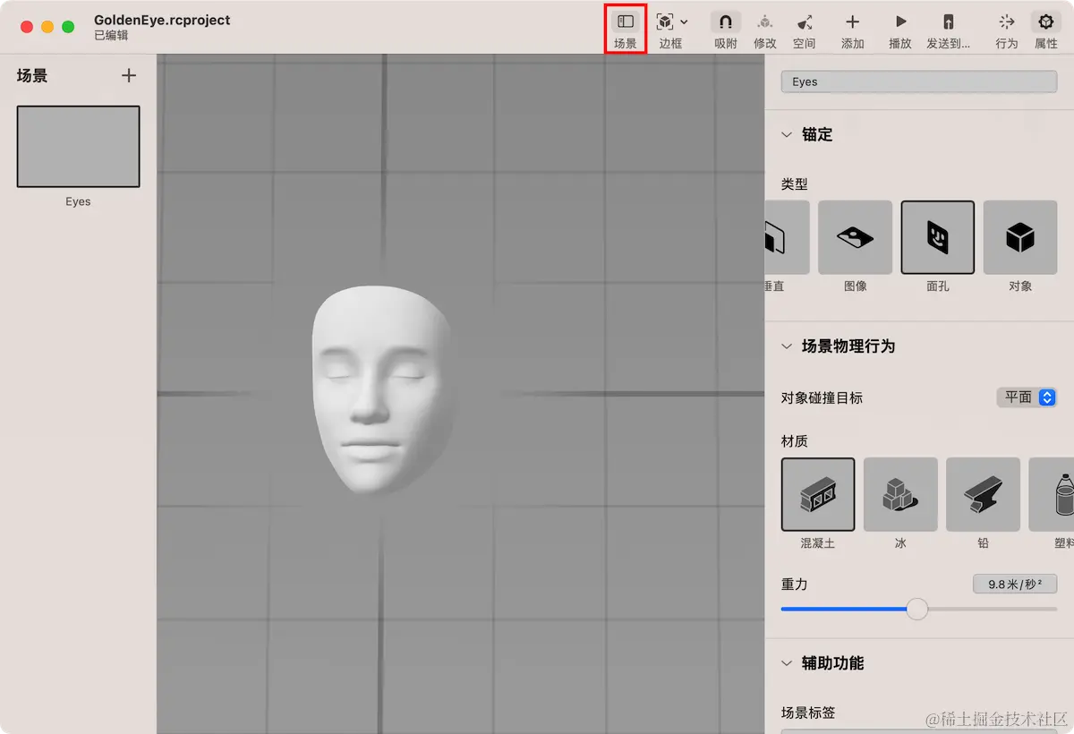 点击上方的“场景”按钮,为场景命名为“Eyes”。