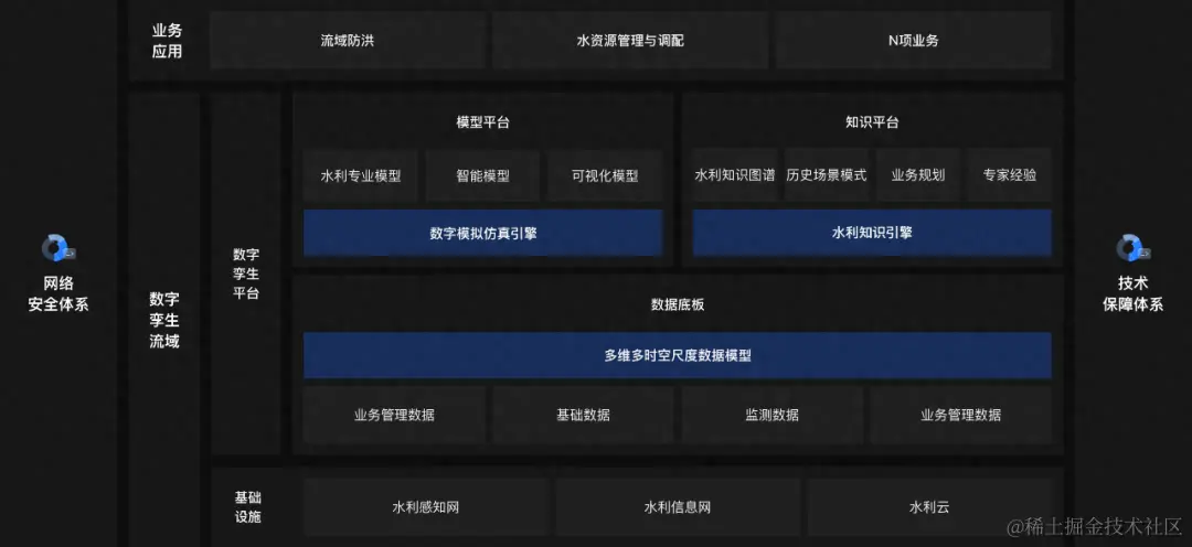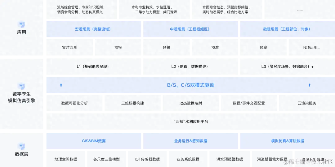 防洪“四预”智慧水利平台基于数字孪生流域总体框架,在遵循行业相关标准规范的同时,通过对水利业务模块的高度抽象,为用户在搭建智慧水利平台时的数据整合、数字孪生可视化展示提供了有利支撑。