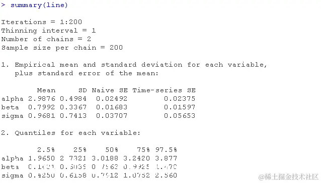 这个命令是把你描述的模型,用C++编码和编译一个NUTS采样器。相信我,自己编写C++代码是一件非常非常痛苦的事情(如果没有很多经验的话),而且它保证比R中的同等代码快得多。