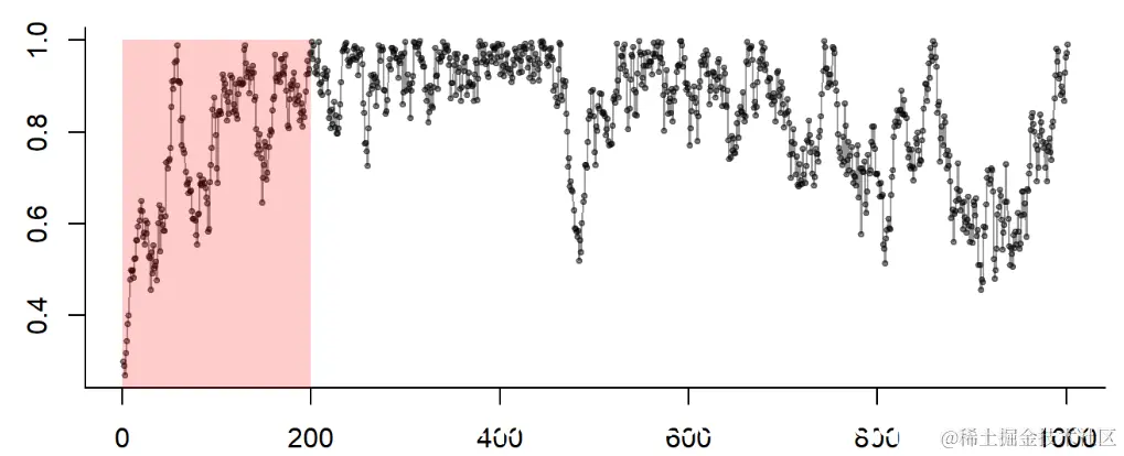 为了保证你收敛到正确的分布,你通常会从不同的位置获得多条链(例如4条)。