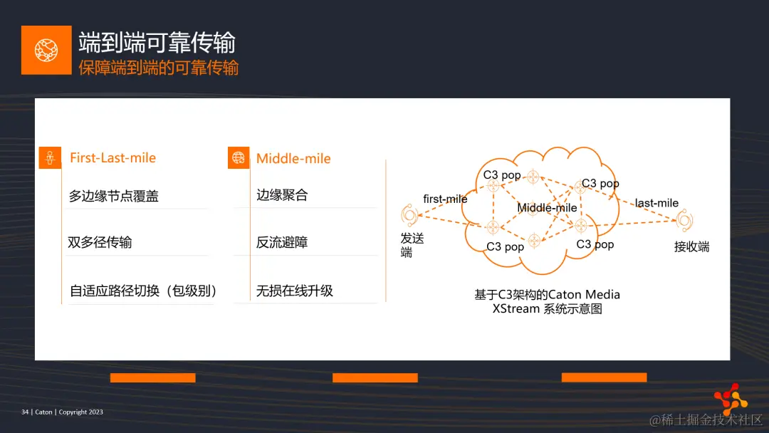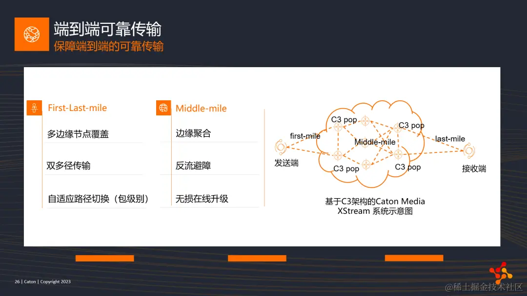 最后一部分,也是C3架构保障端到端高可靠传输的机制介绍。这部分我将从First-Last-mile的数据接入和middle-mile的核心网传输机制两方面展开描述。