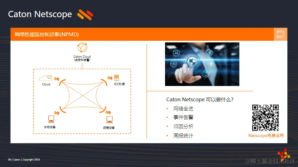 NetScope是一个网络性能监测与诊断服务的SaaS服务。它可以灵活部署在常见的平台设备中,除了基本的实时监控网络状态以外,核心功能是基于AI实现对网络事件更为智能的归因分析,它可以发现线路丢包是由于内网问题,还是路由器问题,或者宽带问题或者跨运营商线路交换问题引起,不用再使用第三方工具去查找线索,极大降低了故障的诊断时间。欢迎大家下载试用,更多产品和功能欢迎大家线下交流。