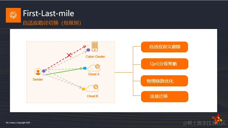 First-Last-mile主要解决的是用户侧的数据如何高可靠的接入C3核心网。我们采取的策略有多边缘节点覆盖,双多径传输以及包级别的自适应路径切换三种机制共同保障。