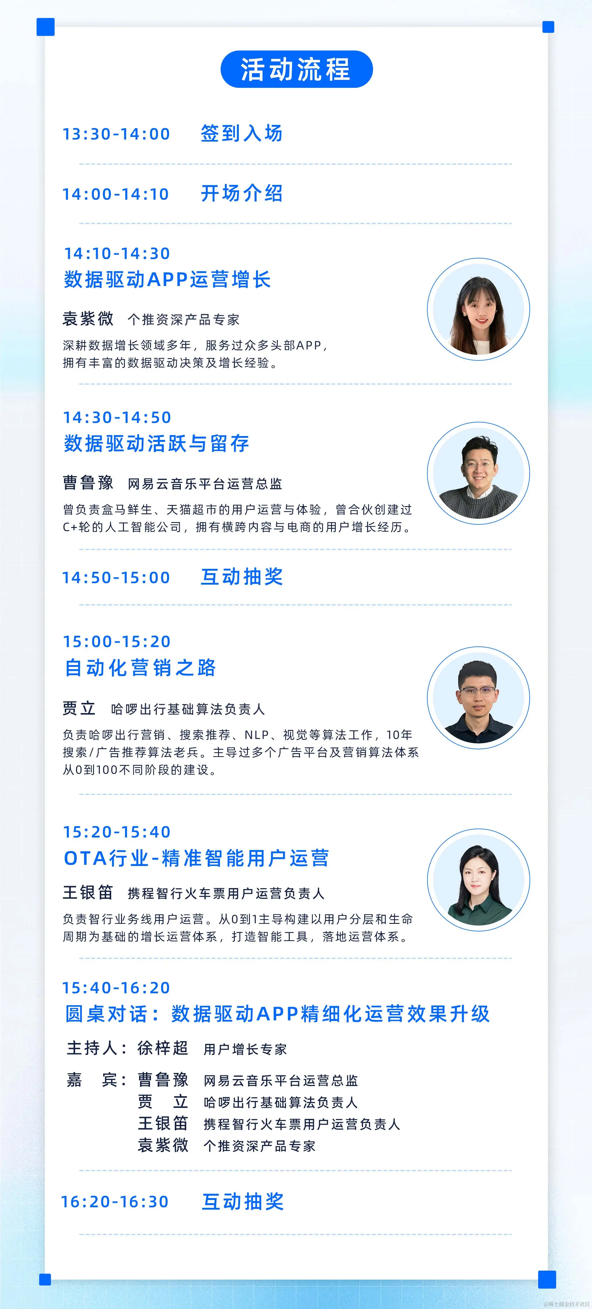 来自网易云音乐、哈啰出行、携程智行火车票等头部APP的增长负责人及个推运营专家,为你带来“数据增能,高效提升用户运营价值”的创新思路,分享数智