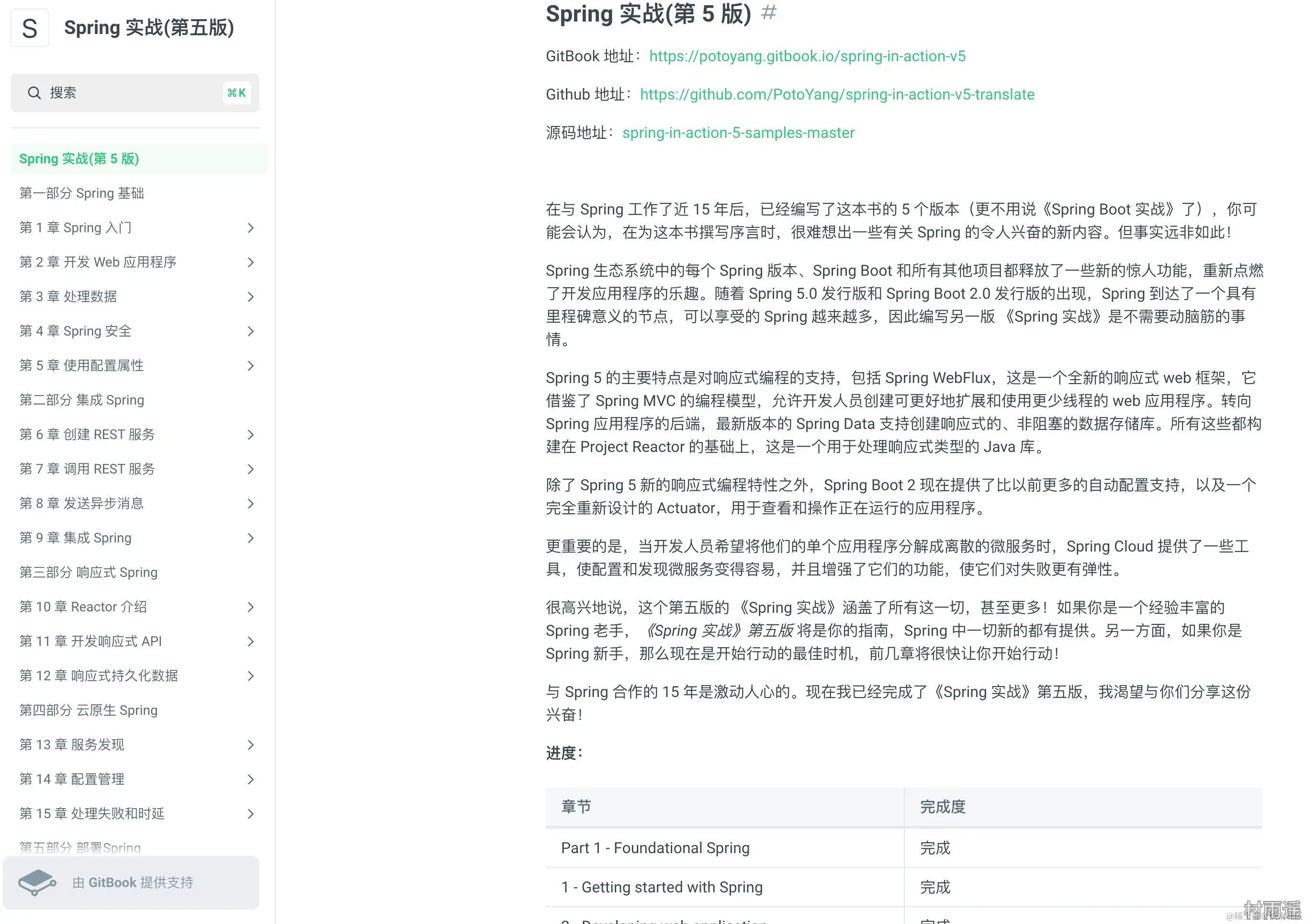 Spring 实战第五版中文翻译。