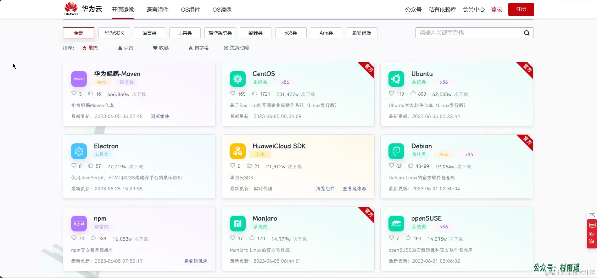华为云 DevCloud 团队提供的全类型镜像站服务,提供主流开发语言组件、操作系统、常用工具和库等镜像,极速下载,全站 CDN。