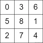 输入: grid = [[0,3,6],[5,8,1],[2,7,4]]