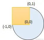 输入: radius = 1, xCenter = 0, yCenter = 0, x1 = -1, y1 = 0, x2 = 0, y2 = 1