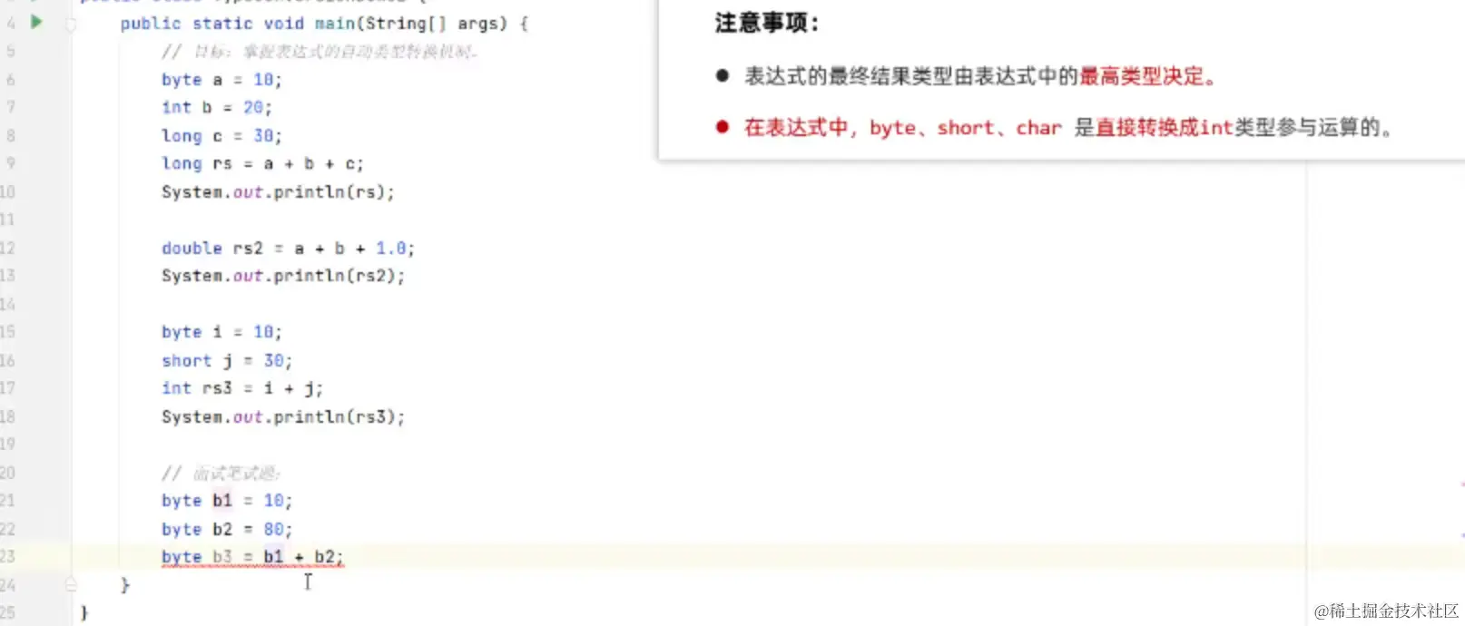 byte 的运算结果会转换为int,需要用int接收