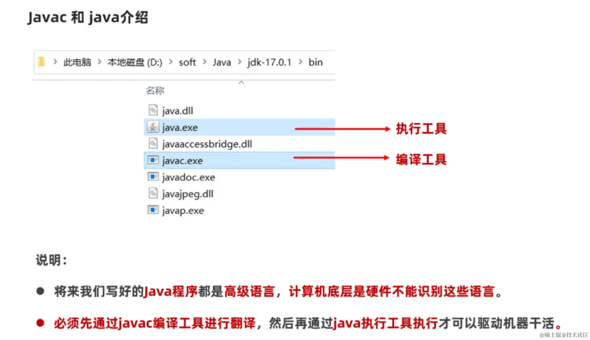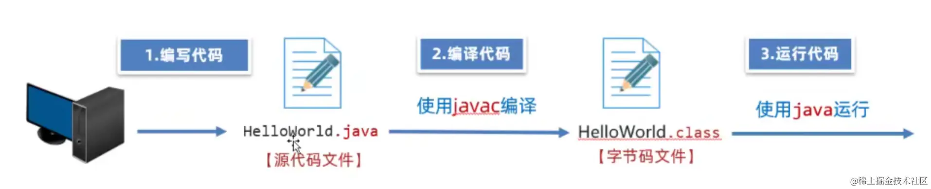 我们编写的java程序都是高级语言,计算机底层是不能够直接识别的,需要通过javac工具的编译才能驱动机器干活。