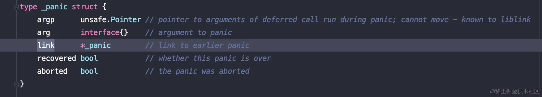 link: 指向更早调用的_panic结构的指针