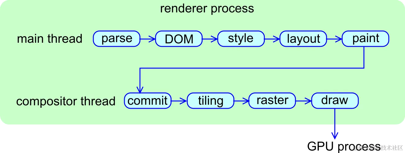 合成的好处是它是在不涉及主线程的情况下完成的。合成线程不需要等待样式计算或 JavaScript 执行。这就是为什么仅合成动画被认为是获得流畅性能的最佳选择。如果需要重新计算布局或绘制,则必须涉及主线程。