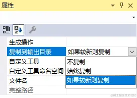 选中三个文件->右键->属性,复制到输出目录:如果较新则复制