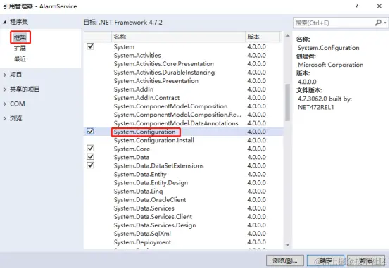 4.引用管理器->程序集->框架,添加System.Configuration引用