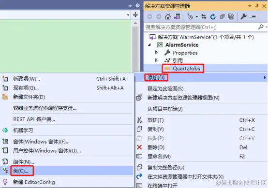在QuartzJobs文件夹下新建类:AlarmJob