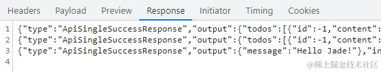 在 Network Response 面板中,我们则看到了一个 Newline delimited JSON 响应,即用换行符分隔的 streaming JSON 格式。每一个被 batch & stream 起来的 RPC 函数调用返回数据后,都将立即产生一条 JSON 结果发送给前端,每一行对应一次 RPC 调用。
