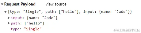 从 Network Request 面板中,我们看到了一个被标记为 Stream 的请求,它里面包含了上面 3 个 RPC 调用的所有信息。